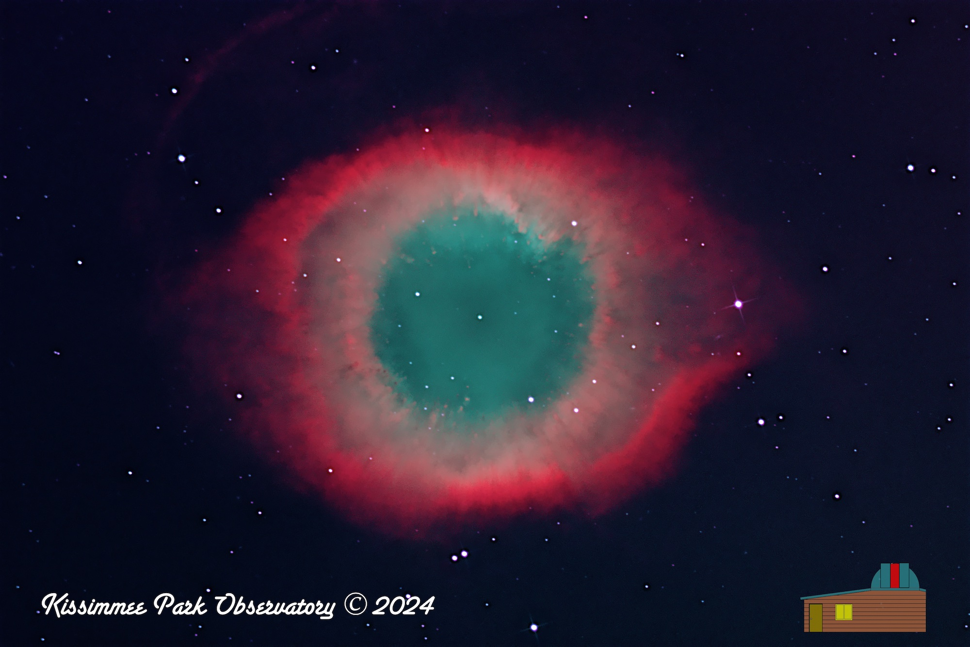 The Helix Nebula, NGC 7293, as captured by the KPO RC-12 astrograph. Total exposure time in this narrowband HOS image is 8.4 Hours.